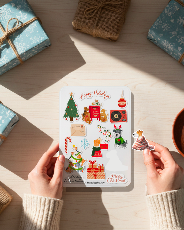 Christmas 2025 fox, lakeland, welsh/airedale & schnauzer sticker sheet