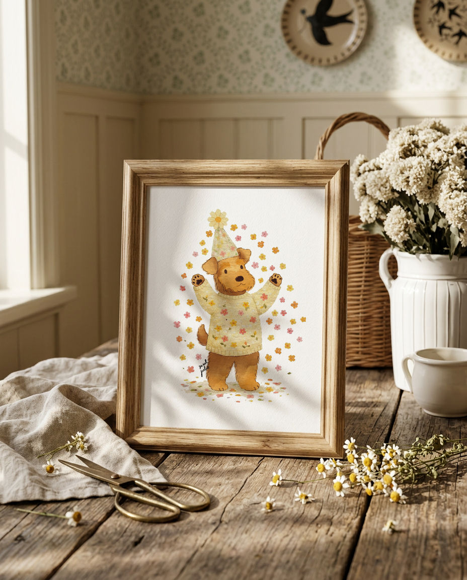 Spring celebration Fox, welsh/airedale, lakeland terrier & schnauzer art print